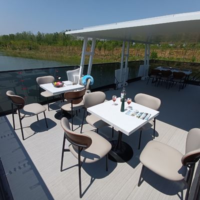 Equipped with a deck thickness of 20mm, this floating house boat ensures stability and durability for long-lasting enjoyment. The sturdy deck can withstand various weather conditions and heavy usage, making it a reliable choice for a floating dining experience.
